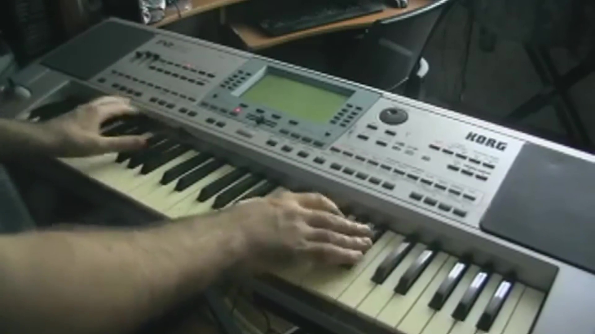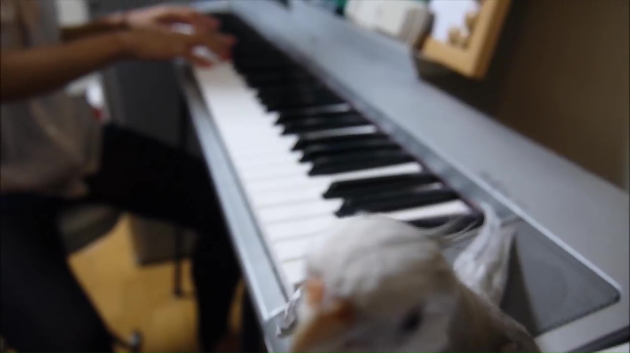 Parrot sitting on a keyboard and singing along.