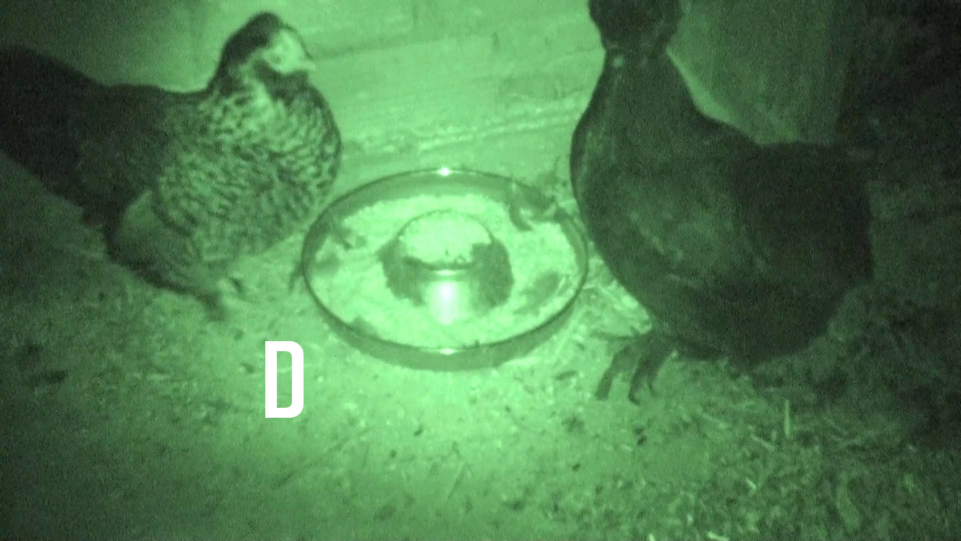 A bunch of chickens waking up and having breakfast